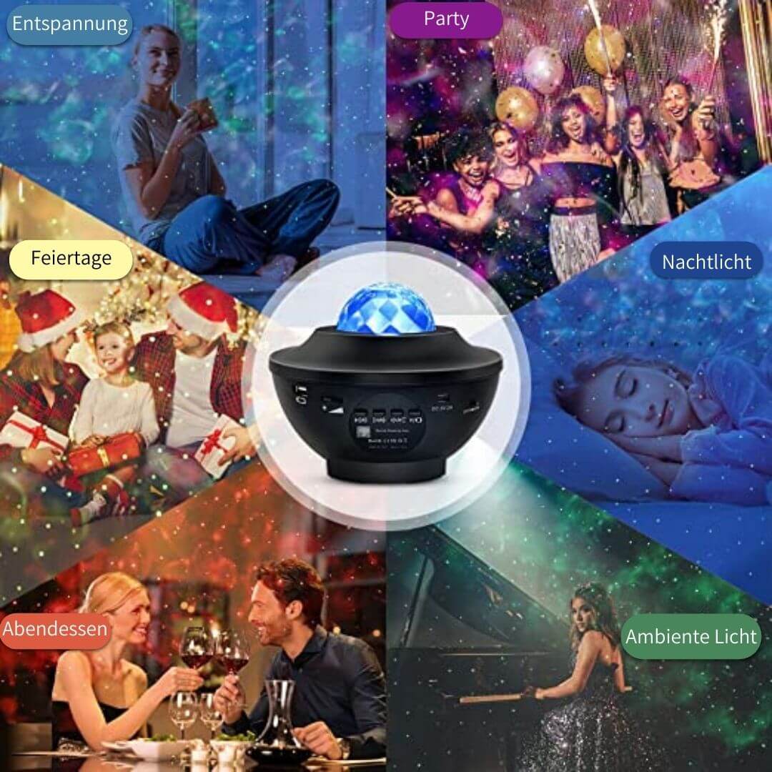 Dieser Projektor ist mehr als nur eine Lampe – er ist ein Erlebnis. Egal, ob Sie die perfekte Stimmung für eine energiegeladene Party suchen, ein romantisches Abendessen unvergesslich machen möchten oder nach einem langen Tag einfach nur in eine Oase der Ruhe abtauchen wollen – dieses Gerät ist Ihr Alleskönner.