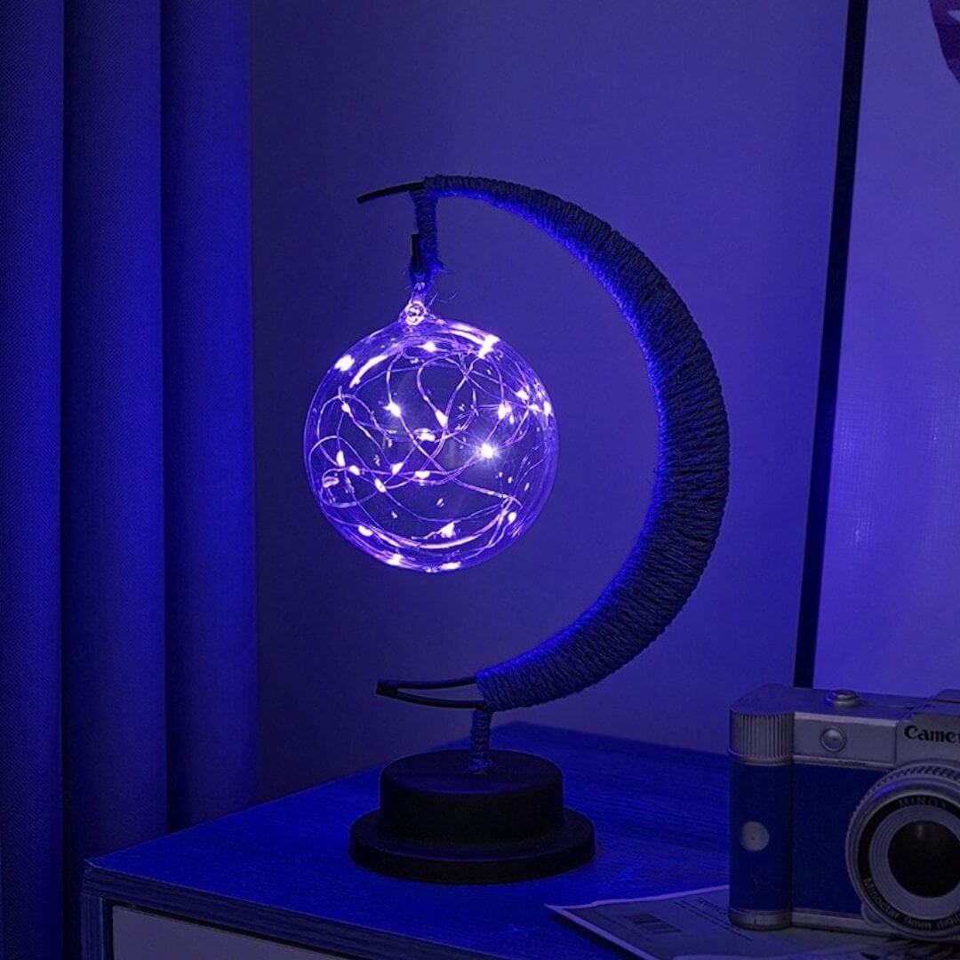 Gestalte deine eigene kleine Galaxie! Unsere bezaubernden Mondlampen bieten dir eine wundervolle Auswahl: Wähle zwischen einem funkelnden Sternanhänger oder einer leuchtenden Kugel, die in verschiedenen faszinierenden Farben erstrahlen kann – von mystischem Violett bis zu beruhigendem Blau. Perfekt als stilvolles Ensemble auf dem Regal, als individueller Farbtupfer oder um deine ganz persönliche Lichterwelt zu erschaffen. Jede Lampe ein Unikat, das Magie und Freude verbreitet.