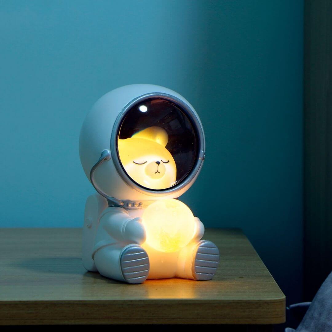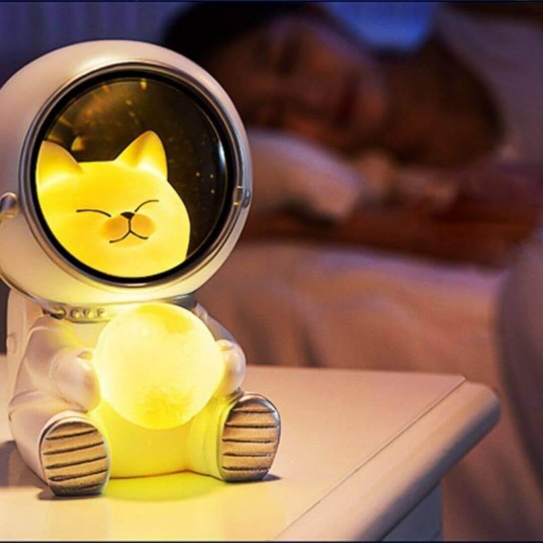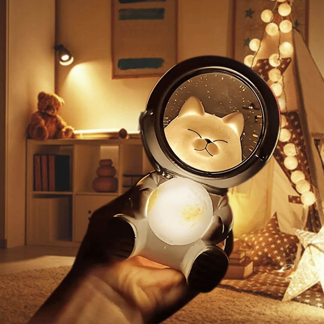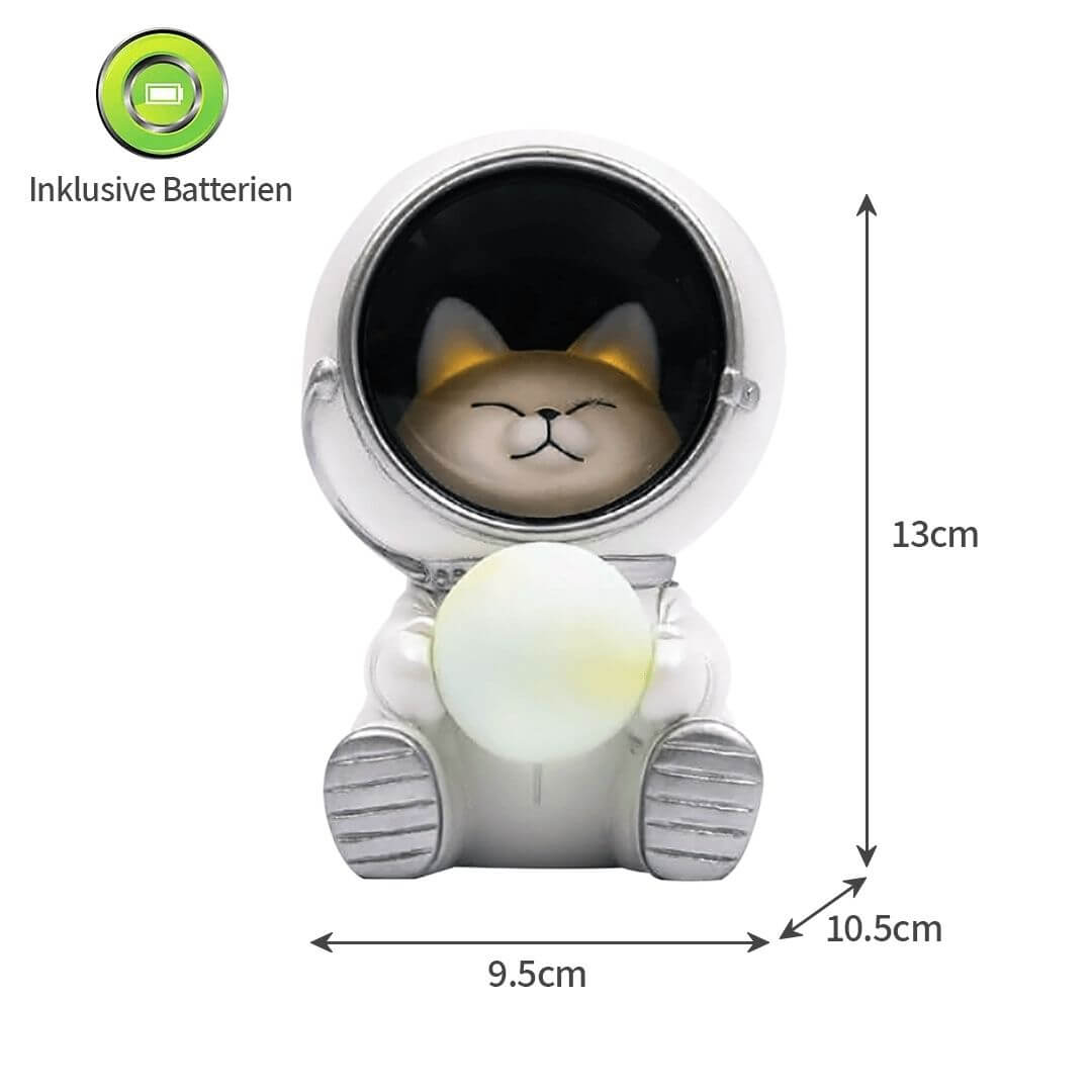 Dieser kleine Weltraumforscher ist mehr als nur eine Lampe: Er ist eine liebevoll gestaltete Figur, die einen sanft leuchtenden Mond in den Händen hält. Das Besondere: Unter seinem großen Helm verbirgt sich ein freundliches Tiergesicht, das zusätzlich für ein Lächeln sorgt und Trost spendet und schafft so eine magische Atmosphäre.