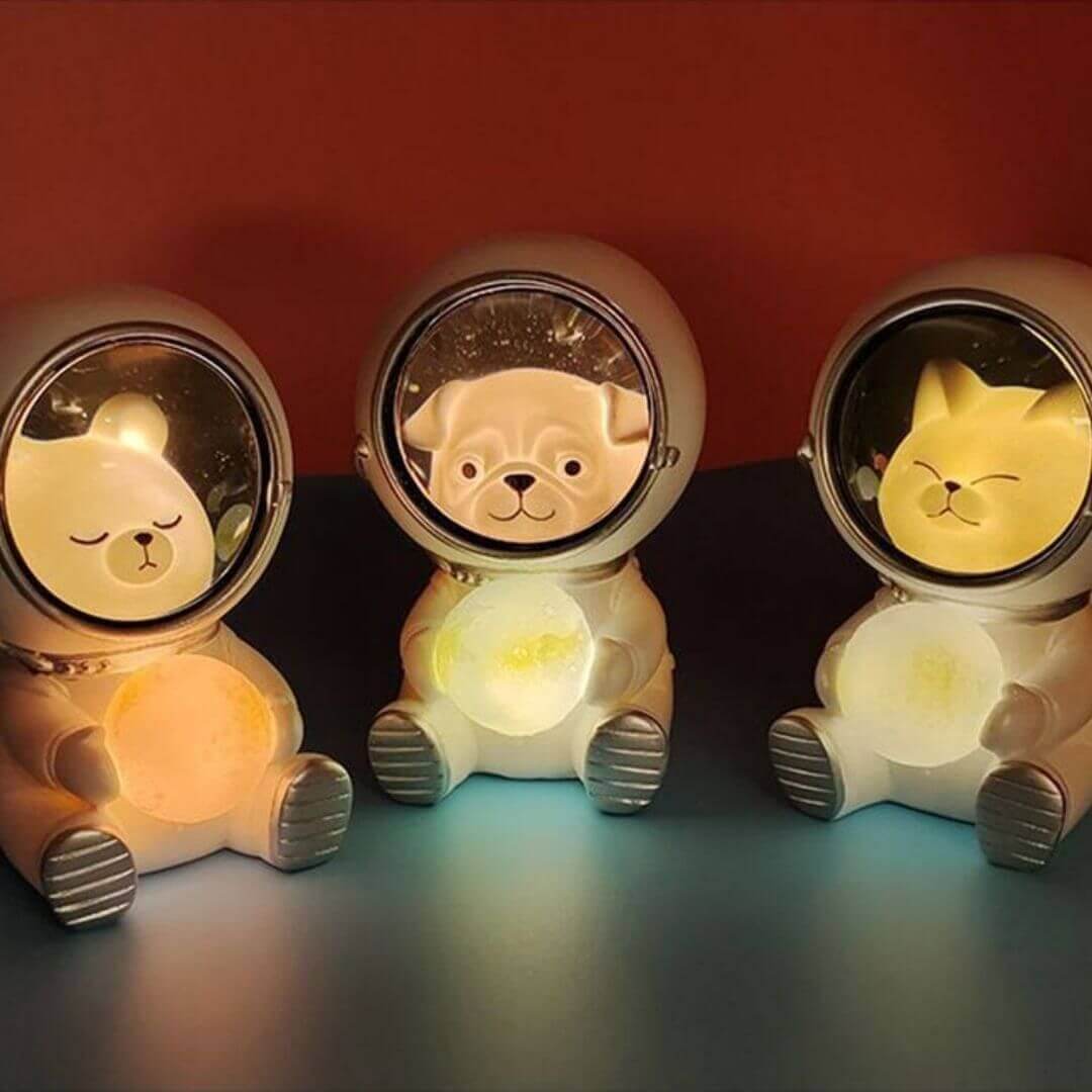 Suchst du nach einem wirklich einzigartigen Geschenk, das Augen zum Leuchten bringt? Unsere Astronauten-Nachtlichter mit den entzückenden Tierchen im Helm (Bär, Katze oder Hund) sind ein absoluter Hingucker! Ob zum Geburtstag, zur Taufe oder einfach als liebevolle Überraschung – diese Lampe ist nicht nur eine süße Dekoration, sondern auch ein praktischer kleiner Helfer für eine gemütliche Stimmung.